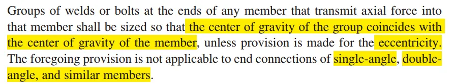 Placement of welds and bolts(螺栓和焊缝的定位) | 除非特殊允许的偏心情况下,应该与构件重心对齐。 |