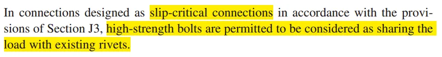 High-strength bolts in combination with existing rivets | →利用高强螺栓与旧结构已有的铆钉一起来抵抗荷载