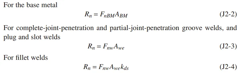 J2.4 strength | 1、焊接节点的强度要根据母材的强度和焊材的强度分别计算,取较小值
