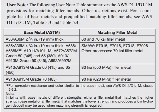 J2.6 Filler metal requirements | 不同的焊接类型、母材型号需要使用不同匹配的焊材。