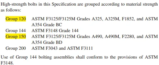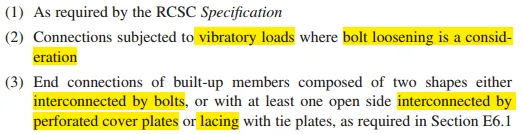 J3.1普通螺栓,除非有施加预应力的需求,一般使用ASTM A307螺栓。(用于次结构或者不需要高强度的地方)