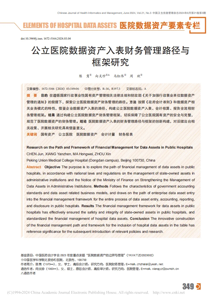 学习笔记 | 论文 | 《公立医院数据资产入表财务管理路径与框架研究》_中国医学科学院北京协和医院_陈隽