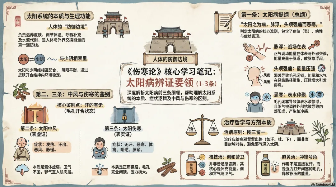 中医治病的战略核心是“驱邪”而非“歼灭”。这种逻辑在太阳病的治疗中体现为极高的干预智慧。