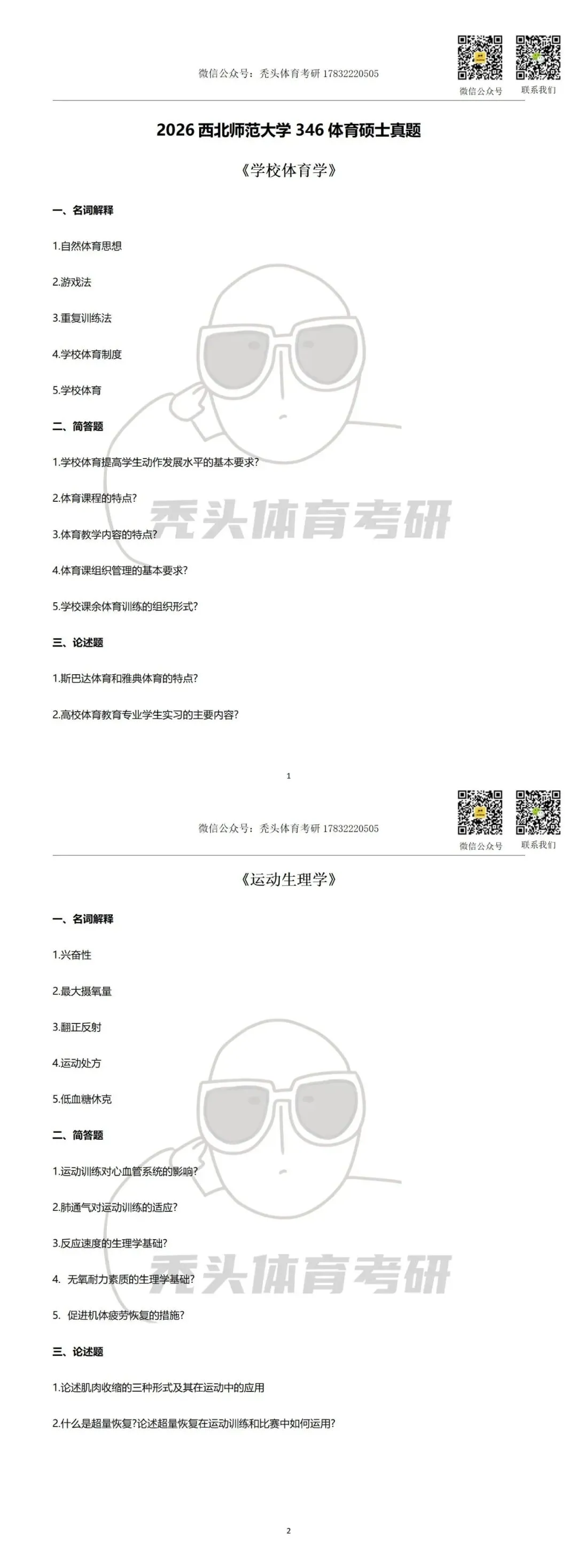 >26体育考研真题丨西北师范大学346体育综合初试真题(2026)