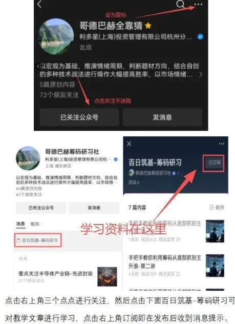 为了大家能够一点点的学习,本人为大家准备了专属课程,而且全部免费,只要每天坚持去学习,在下面留言打卡即可。定期一周1-2篇幅。如果每篇文章打卡超过300人,本小编就会努力再写一篇。为了防止杀猪盘之类的介入,本着两个原则:第一,不推票。第二,不开微信、qq群组。目前我已经为大家准备好了7节课程的内容,大家可以先学习一下。点击下面即可。或者按照图片指引操作。百日筑基-筹码研习