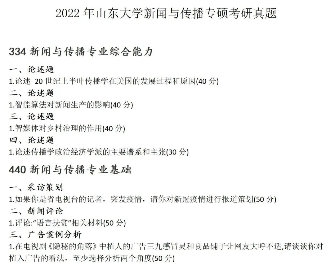 >山东大学新闻与传播考研真题2022