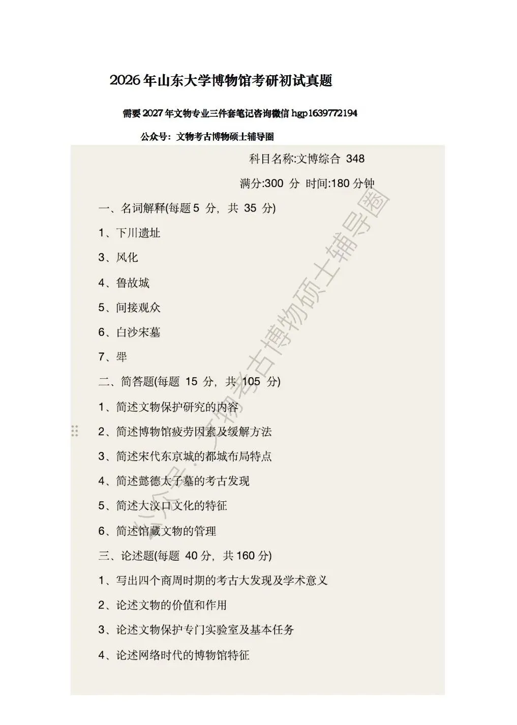 第20集2026年山东大学博物馆考研真题讲解视频