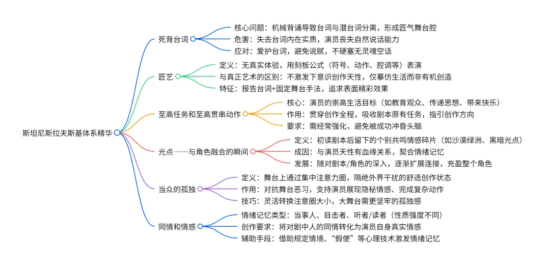 难道演员们在研究自己的艺术及其本质了吗?不,他们研究的是怎样表演这一个或那一个角色,而不是怎样去有机地创造它。演员的匠艺教导人怎样出台和表演。而真正的艺术则应该教导人怎样有意识地激发自身的下意识创作天性,以进行超意识的有机的创作。(同上,476页)