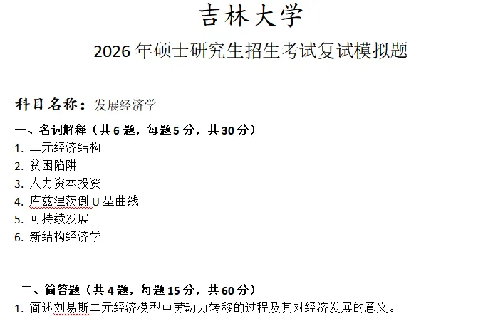 吉林大学发展经济学考研复试真题模拟含答案