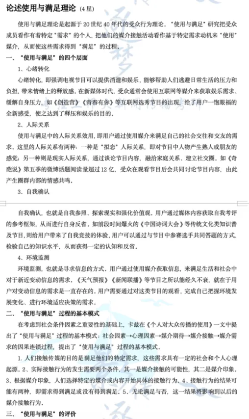 同时,题面亦可理解为“短视频平台通过自身的技术条件来引导、强化用户的使用动机并如何实现满足”。我们在考前点睛班中非常详细地复习了视听传播平台的特点,其中也包括技术特点,我们提到的“个性化推荐”“社交互动性强”“移动渠道”都可以用作这道题的观点。