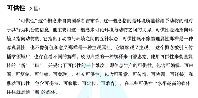 逐梦岛考点笔记新传册直接押中!“使用与满足”与“可供性”这两个基础概念在背诵笔记中有非常详细的阐释,“使用与满足”出现在《传播学概论》的第十章“社会转型与受众变迁”。