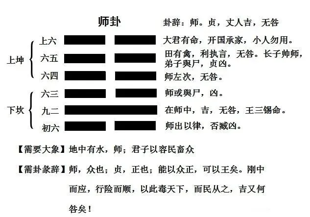 2026年1月23日,学习了易经的第7卦,师卦。在争讼之后,如果没有合理的解决,就可能出现集结军队相互攻击。师卦上坤下坎,水在地下为聚之象,内险外柔,劳师动众,武力解决。