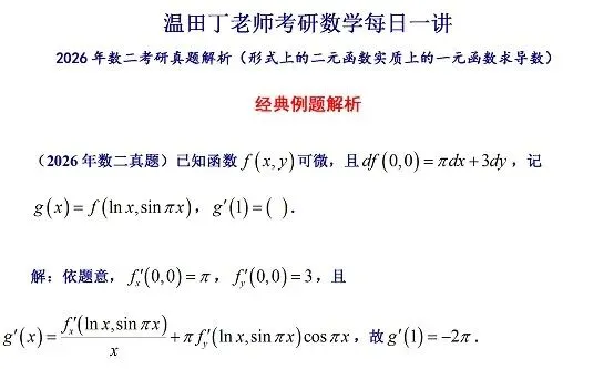 >2026年数二考研真题解析(形式上的二元函数实质上的一元函数求导数)