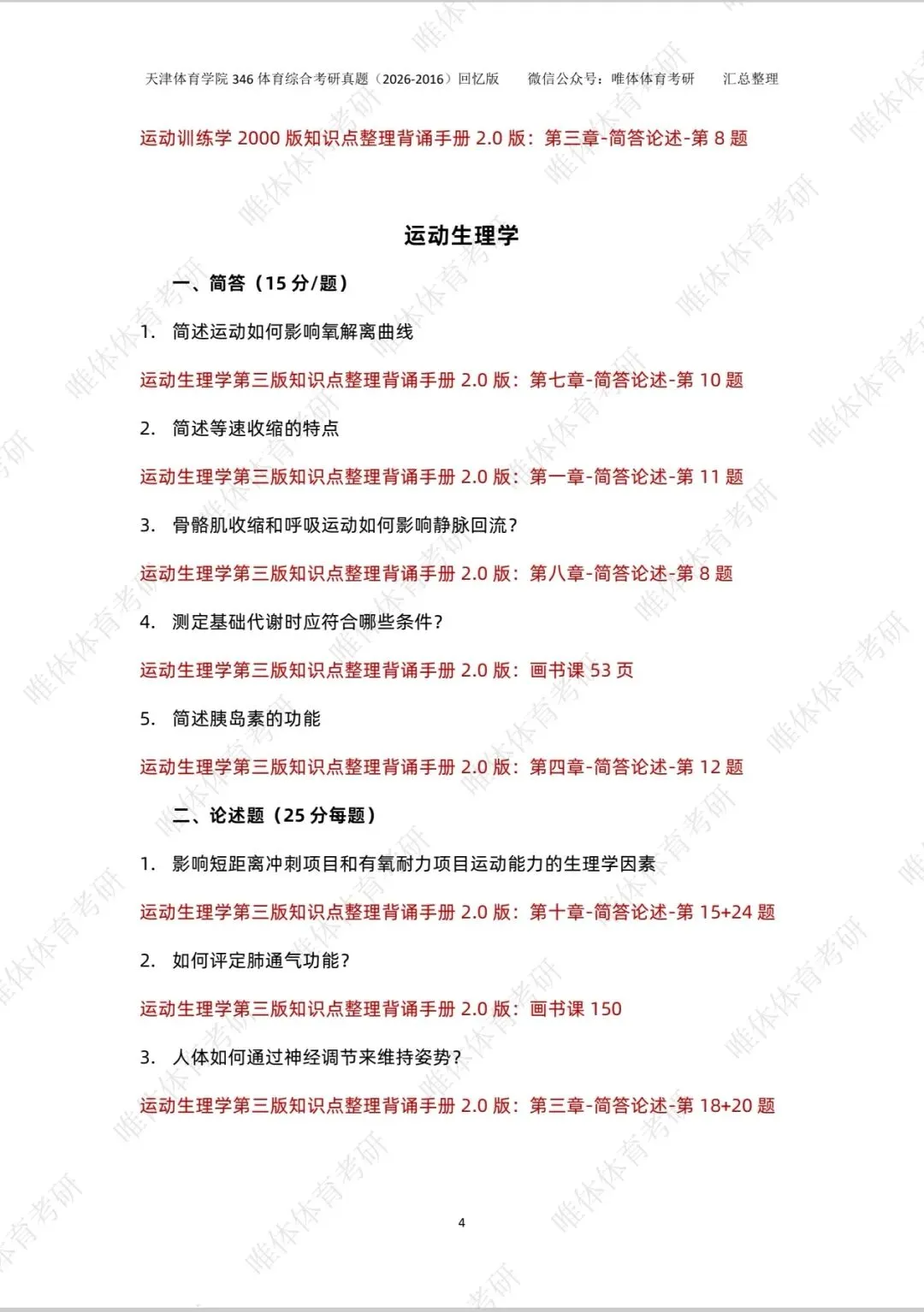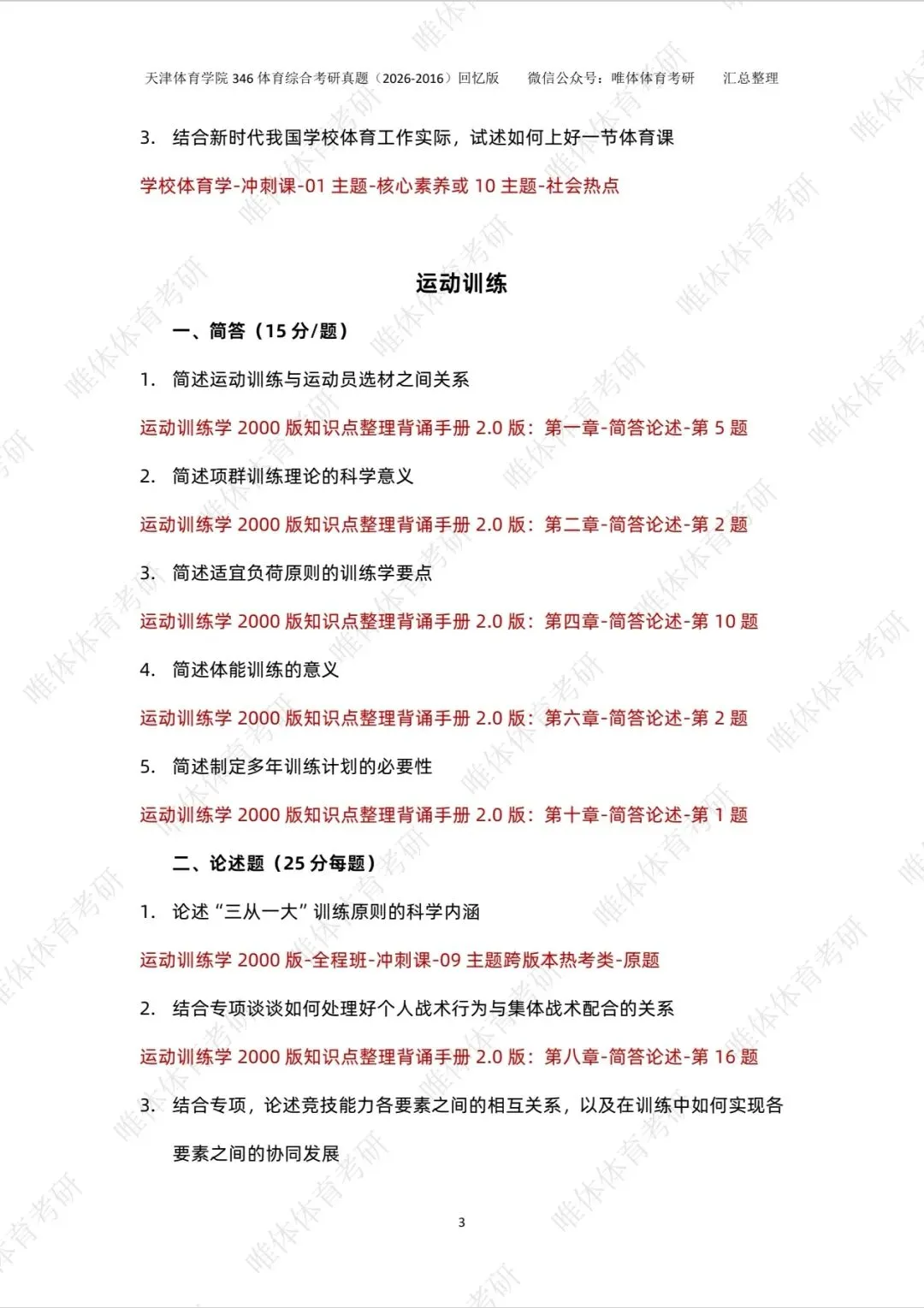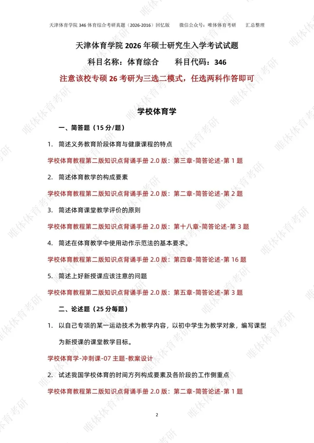 >【体育考研】26考研天津体育学院346体育综合考研真题!