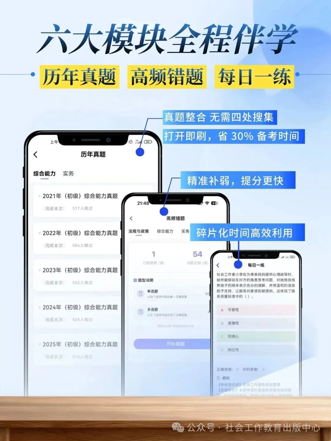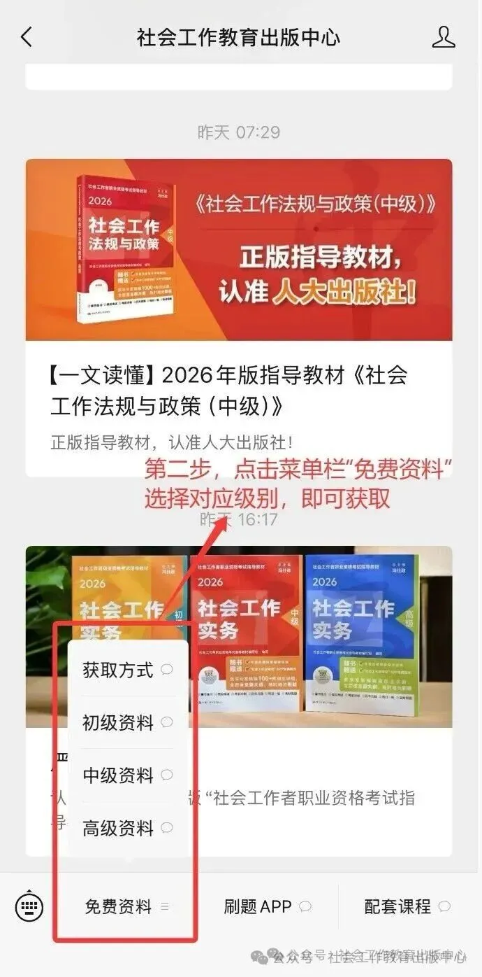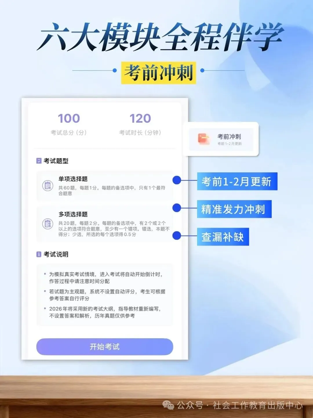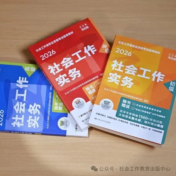 购买人大出版社正版“社会工作者职业资格考试指导教材(2026)”,扫描正版图书封面二维码,即可免费激活由中国人民大学出版社联合教材作者与资深专家团队重磅打造的“社会工作者考试”APP,获得你的专属移动备考系统,海量试题、作者视频,随时随地复习~
