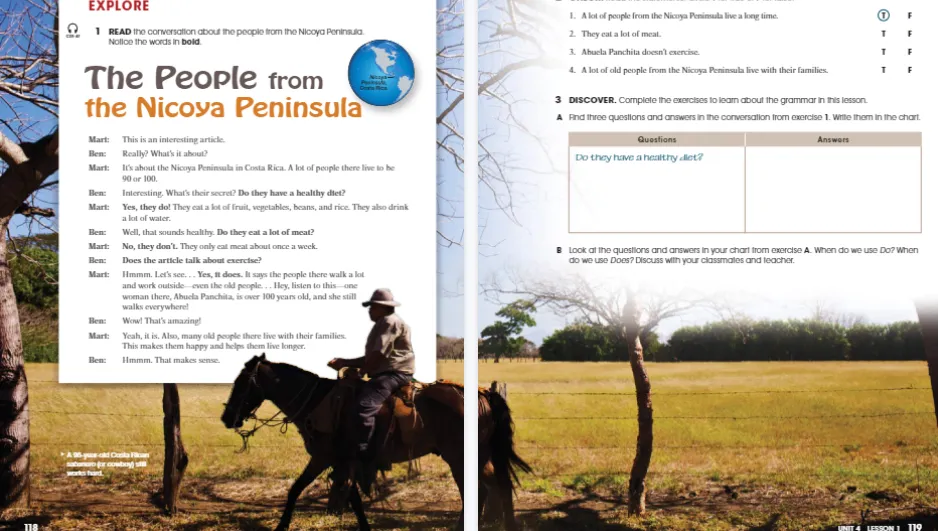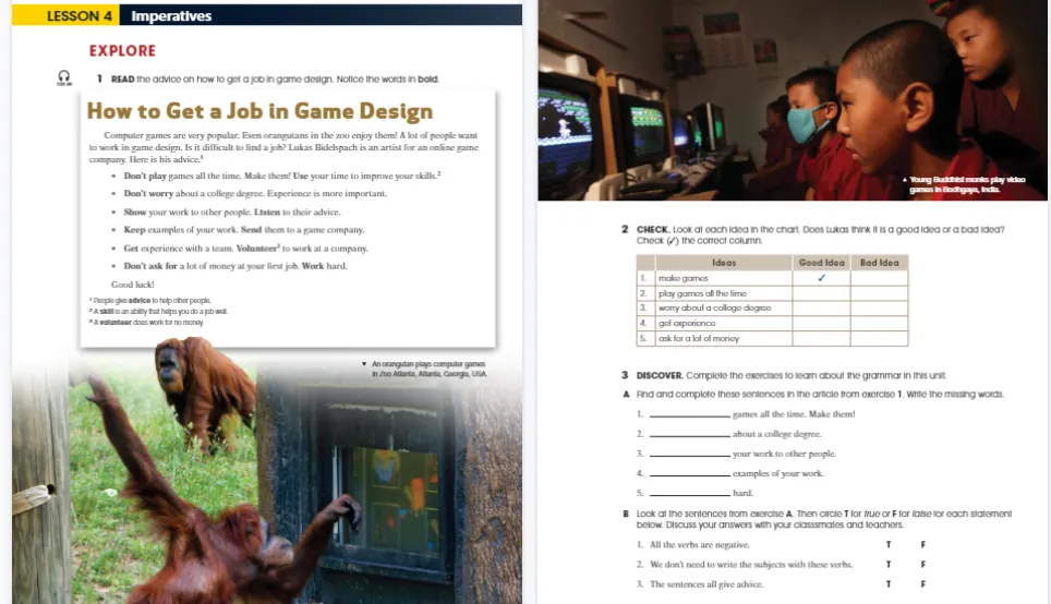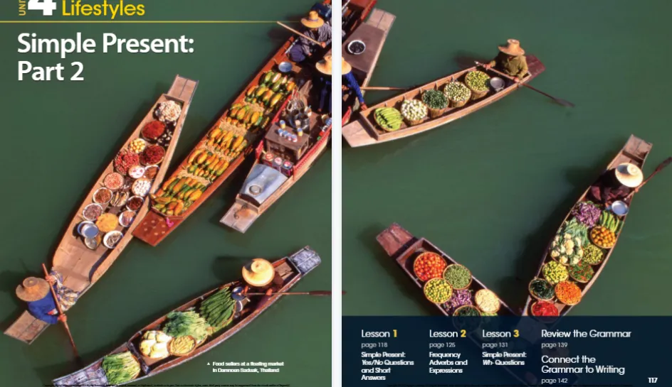 Grammer Explorer这份教材真真正正做到了“寓教于乐”;在学习语法上,他不会直接扔给孩子语法公式,而是先给出一篇篇带国家地理高清图的短文,内容涵盖极地动物、雨林生态、人文故事,孩子读得入迷时,自然会接触到各种语法结构。