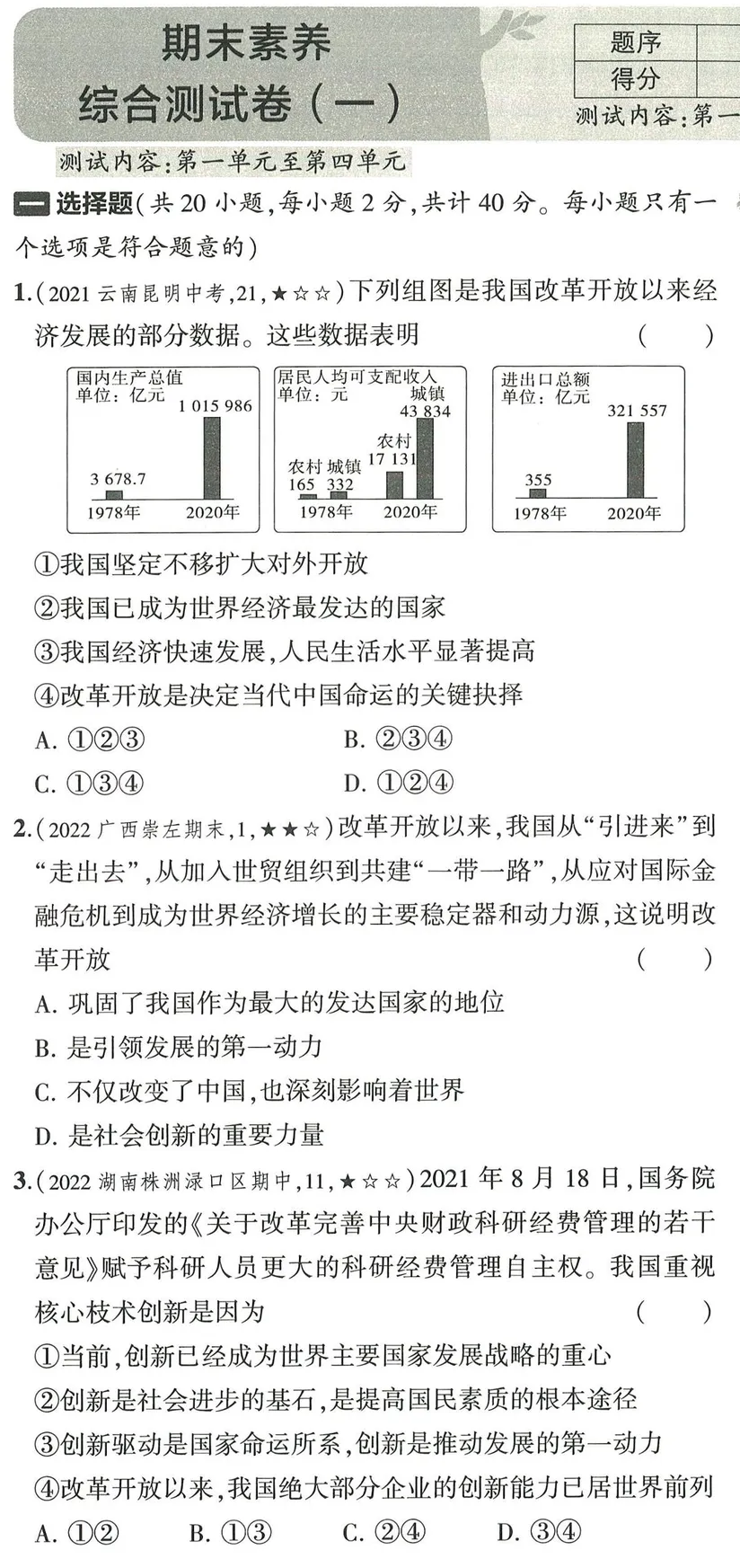 第一、二单元 测试卷PDF下载