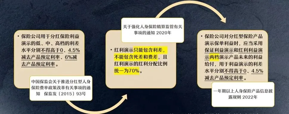 监管对利益演示做了严格的限制,比如红利演示只能包含利差,分配比例统一为70%。