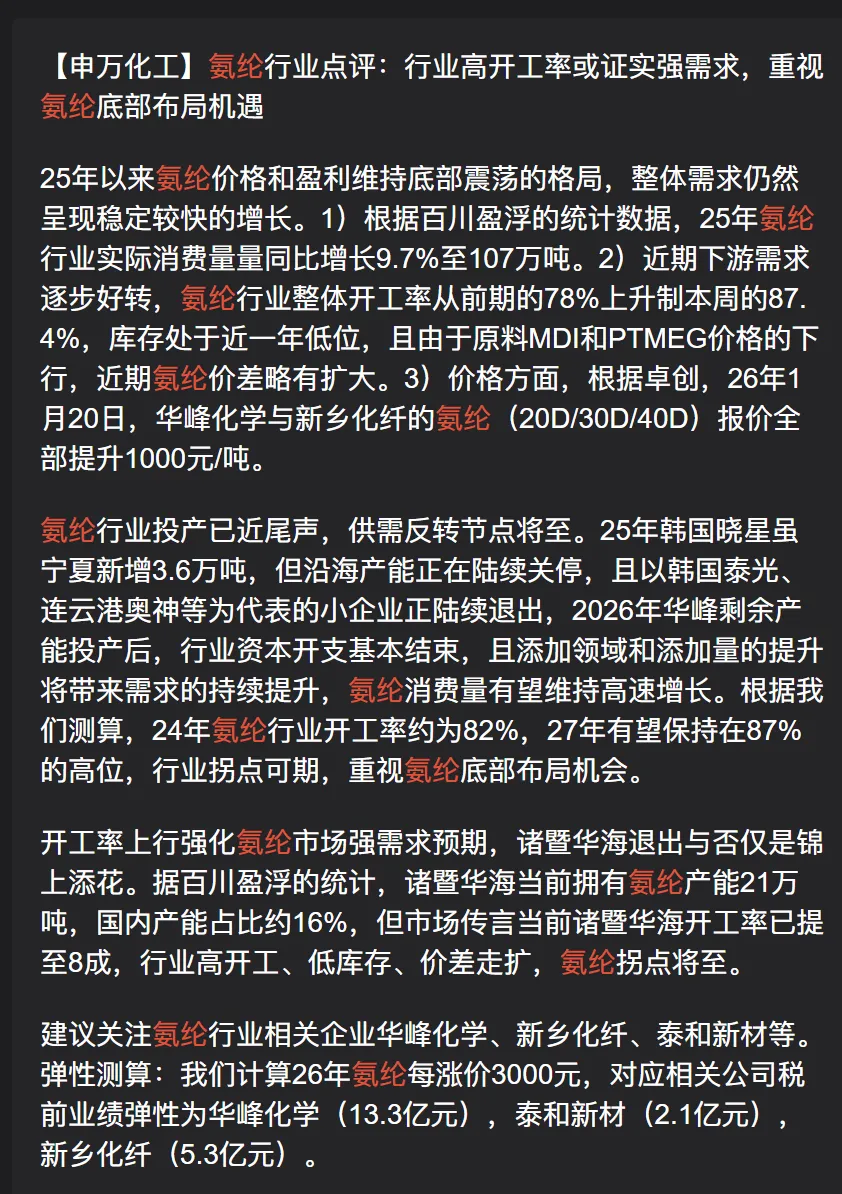 总的来说,行业的β还是听明确的。就是感觉华峰已经提前涨上去了,按行业比较乐观的拍35E,现在也小20倍了。新乡可能弹性会更好一点。