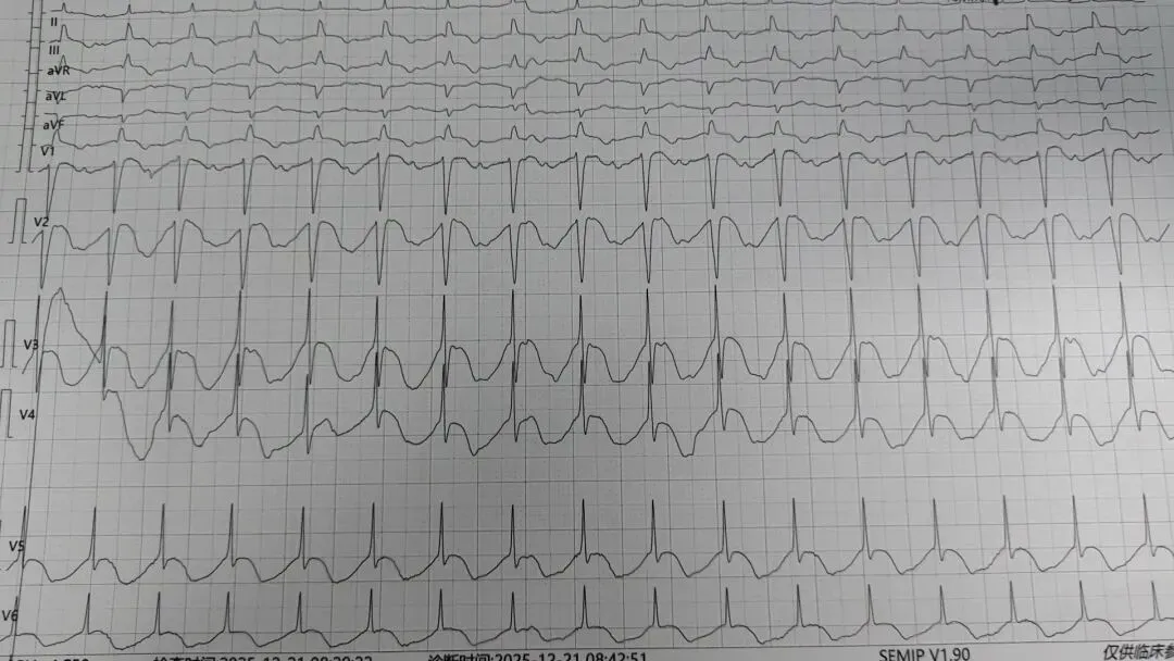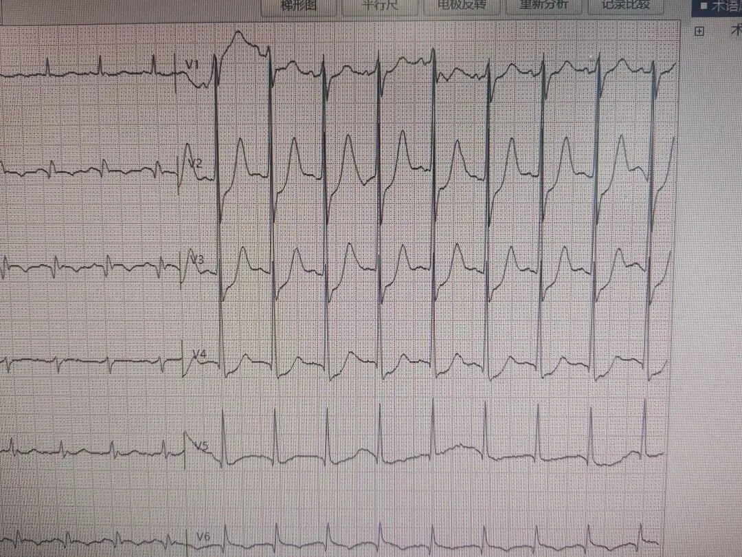 图三患者胸闷,外院行心电图,未重视,患者行至本院挂普通门诊,中间间隔数小时