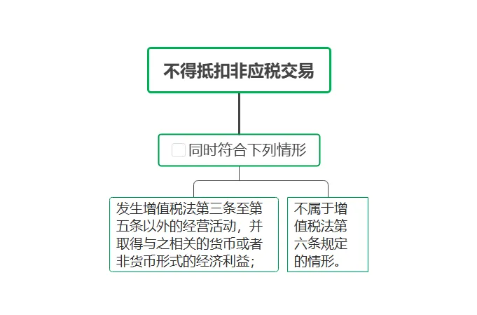 实施条例第二十二条:纳税人购进货物、服务、无形资产、不动产,用于同时符合下列情形的非应税交易(以下统称不得抵扣非应税交易),对应的进项税额不得从销项税额中抵扣: