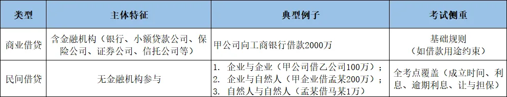 一、借款合同的基础框架(一)核心属性1. 标的物:货币(一般等价物),能转移所有权(与买卖合同、赠与合同的共性)2.分类标准:按主体是否含金融机构划分,考试重点为民间借贷。(二)两类借款合同的区分
