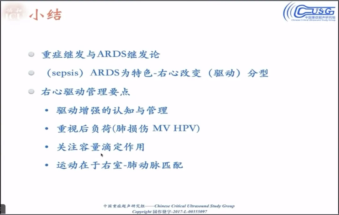 答:必须遏制。临床中最常见的是左右心双高驱动,右美托咪定等药物并非直接针对右心,而是通过抑制交感神经,同时降低左右心的驱动,这是临床中最常用且有效的方法。控制双高驱动,能直接减少肺的灌注,避免肺水肿加重,是 ARDS 治疗的关键。