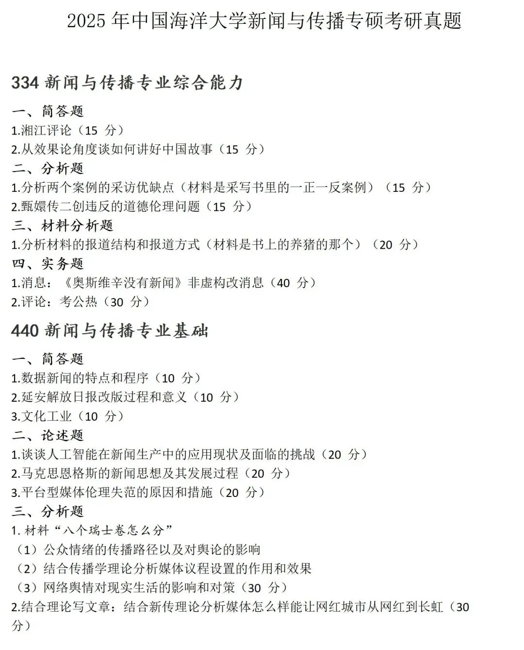 >中国海洋大学新闻与传播考研真题2019-2025历年