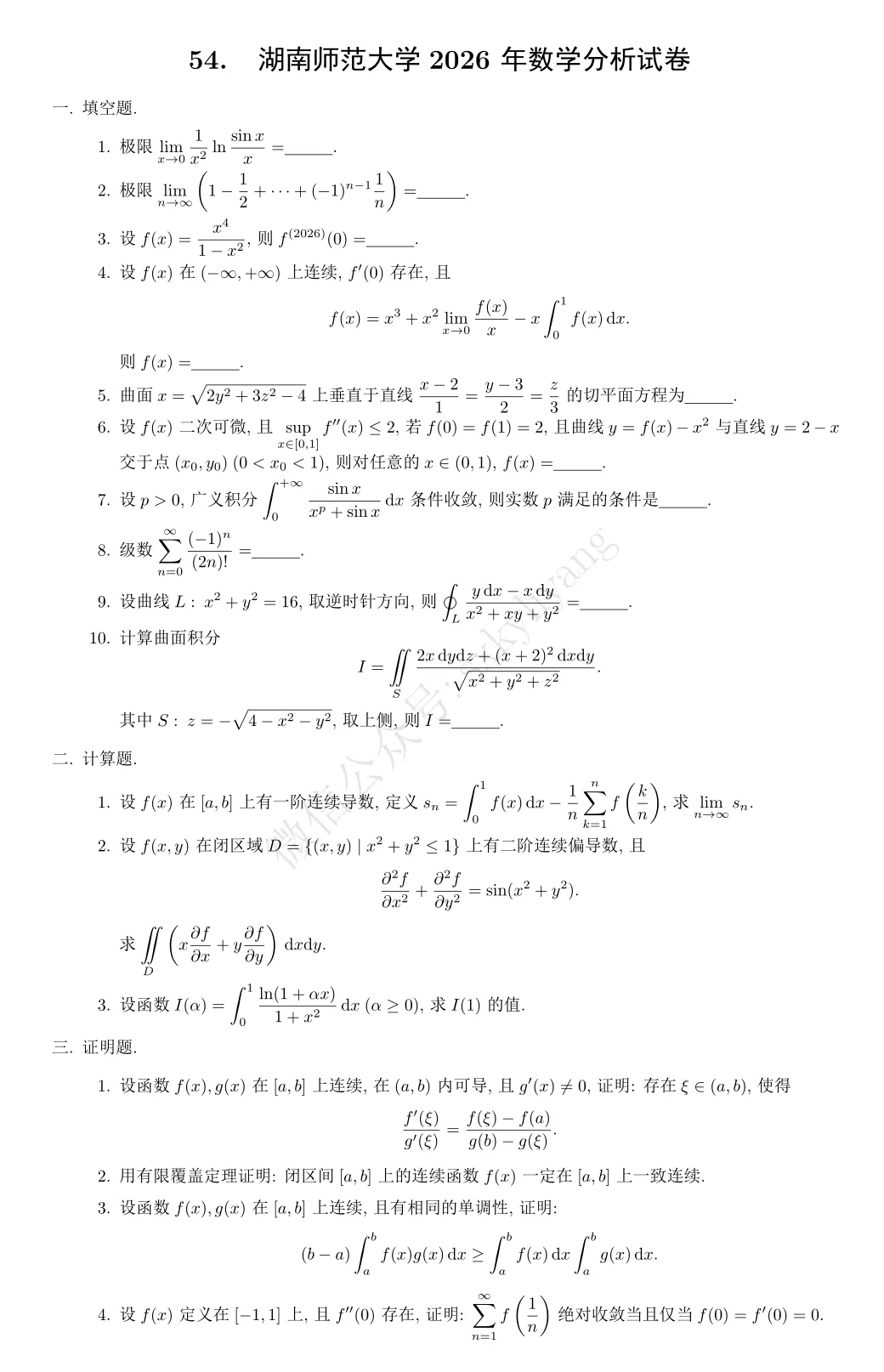 湖师大, 你挺难呀! 很多填空题都可以作为别的学校的大题.