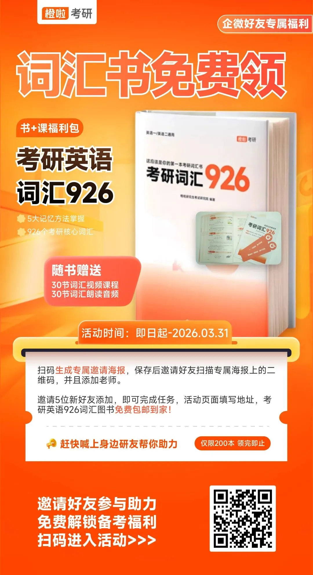 🎁 参与视频号活动 🎁免费领取星星人盲盒福利🙋具体参与规则 点击视频见评论区置顶信息🎁 免费包邮送 🎁0元领考研英语真题图书&词汇书🙋福利亲测有效!快来一起领!!!只需要简单三步就能解锁奖励👇1️⃣ 长按图片扫码生成专属海报2️⃣ 分享给朋友或朋友圈邀请助力3️⃣ 集齐助力,填写信息领取奖励🎯目前无需拼手速,参与就有机会!🎉很多宝子已经领到啦,你也赶快上车吧~👇长按扫码参与活动,生成你的海报👇👇长按扫码参与活动,生成你的海报👇