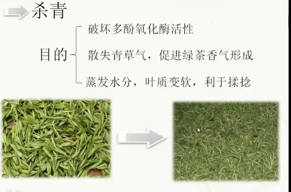 1. 不发酵茶,关键工序“杀青”阻止多酚氧化,形成“清汤绿叶”。
