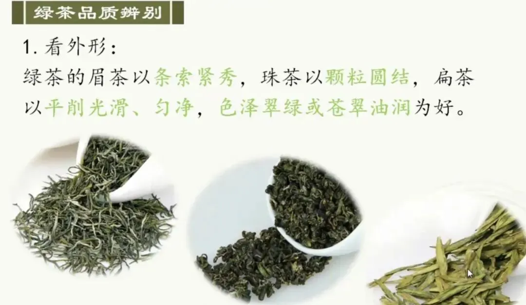 1. 外形:匀整、翠绿或苍绿、油润;忌枯暗、花杂。