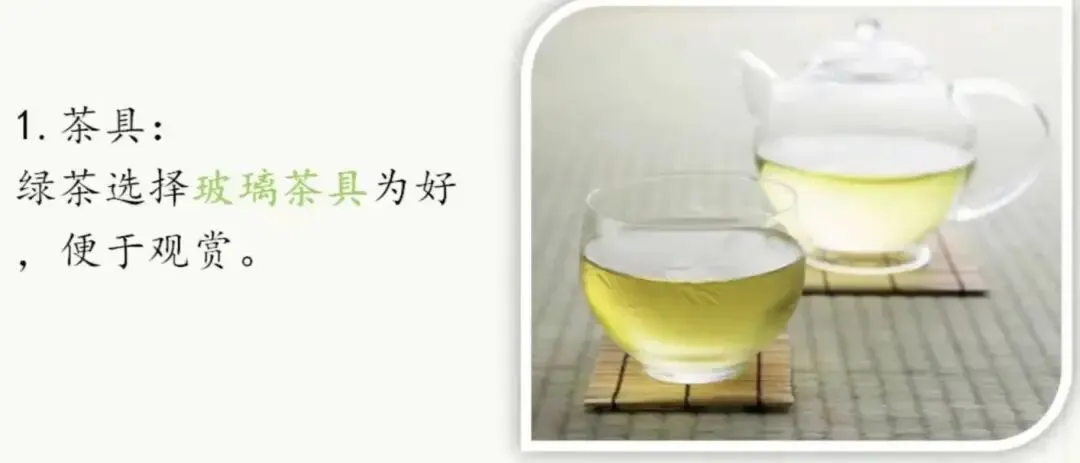 1. 器具:玻璃杯、盖碗、水晶壶,赏形观色。
