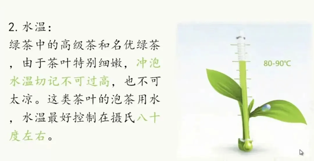 *2. 水温:名优绿茶 75–80℃;粗老大叶可 85–90℃。