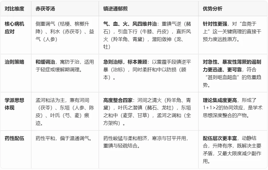 薄厥证的病机传变具有 **“诱因明确、病位集中、由气及血、由轻及重”的特点,从病因、病位、病性、病势 ** 四个维度解析,可清晰梳理其病机发展的完整脉络,为理法方药的制定提供精准依据:薄厥证的病因分为直接诱因与内在本源,二者结合方发病,无诱因则本源不发,无本源则诱因不致厥:直接诱因(外因):大怒过极,七情之怒直接伤肝,为薄厥证的即刻触发因素,无大怒则肝之疏泄不致骤然失常,气机不致暴逆。内在本源(内因):肝阴不足、脾胃气虚,肝阴不足则体阴不制用阳,肝木易亢;脾胃气虚则木失濡养、木旺乘土,为肝火易生、气逆难平的内在基础,此为本源,决定了薄厥证的易感性与病情轻重。薄厥证的病位具有 **“本标分明,由本及标,波及心肺脾”** 的特点,核心病位固定,传变病位集中于上焦:本病位:肝,为薄厥证的核心病位,所有病理变化均由肝失疏泄、肝火热盛引发,肝为病机之根。标病位:胸中(上焦),为气血壅塞、厥逆发作的部位,胸中为心肺所居,气血壅塞则薄厥发于此处,为症状表现的核心部位。波及病位:心、肺、脾,肝之气火暴逆上冲犯心肺,致心肺气滞、气血壅心;肝木暴亢克伐脾土,致脾失健运、气机失和,此为病机的自然传变。薄厥证的病性为本虚标实,虚实夹杂,发病初期以标实为主,日久则本虚加重,出血变证则虚实并重:标实(主导):肝气暴逆、肝火热盛、血菀于上、火热迫血,为薄厥证发病初期、中期的核心病性,表现为胸中不和、气逆、厥逆,甚则呕血鼽衄,此为当下可见的病理实象。本虚(基础):肝阴不足、脾胃气虚,为薄厥证的内在病性,肝阴不足是肝阳、肝火易亢的基础,脾胃气虚是木旺乘土、气血生化无源的基础,日久则因火热煎灼、气逆耗散而致气阴更伤,本虚加重。薄厥证的病势具有 **“传变路径固定,病情逐渐加重,可逆性强”的特点,若及时干预,可阻断传变,若失治则病情急剧加重,甚则危及生命,其病势发展分为三个阶段 **,依次传变:第一阶段:气分逆乱(轻):大怒伤肝→肝失疏泄→肝气暴逆于上→胸中气机不和,表现为胸闷、胁胀、烦躁,此为病之初起,仅涉气分,未及血分,可逆性最强,及时理气则病愈。第二阶段:气逆血菀(中):气逆不已→血随气逆→血菀于上焦胸中→气血壅塞→薄厥发作,表现为胸中憋闷、突然厥逆、头晕目胀,此为病之发展,由气分及血分,气血同病,需理气降逆、活血通瘀。第三阶段:火热迫血(重):气逆日久→化火生热→火热灼伤血络→血溢脉外→呕血、鼽衄,甚则 “形气绝”(下焦气血匮乏),此为病之危重,火热迫血、血络损伤,需清热泻火、凉血止血,兼顾扶正。传变关键:薄厥证的病势传变以 **“气分→血分”** 为核心,火热是连接气分与血分的关键环节,阻断火热则可防止血络损伤、出血变证。五、四家医派理论分析原方「赤茯苓汤」+ 中药药性解析原方赤茯苓汤为薄厥证而设,组成为:赤茯苓(去皮)、人参、桔梗、陈皮各一两,芍药、麦门冬(去心)、槟榔各半两,生姜五片为引,共为末煎服。以下先完成方中中药药性与用药用意解析(分君臣佐使),再融合刘完素、李东垣、叶天士、孟河医派四家理论,从多视角解析解读该方,并给出综合评价。本方以 **“理气降逆、养阴和中”** 为核心配伍思路,紧扣薄厥证 “气逆血菀、胸中不和” 的基础病机,用药寒温平和,兼顾扶正与祛邪,君臣佐使清晰,生姜为引,具体药性与用意如下:用药用意:作为君药,以淡渗利水、导气下行,引上逆的气机、壅滞的湿邪从小便而出,为降逆理气之核心;健脾以助脾运,防肝木乘土;宁心以缓解气血壅心之象,契合薄厥证 “气逆胸中、气机不和” 的核心病机,性平而不寒不热,为降逆之平和之品。臣药:人参、陈皮、芍药(三味相辅,分扶正、理气、柔肝)用药用意:补脾胃元气,固脾土以防肝木乘土,契合 “木旺乘土” 的病理传变;大补元气以弥补气逆耗散之正气,生津以护阴,防火热煎灼阴液,为扶正固本之臣药。用药用意:辅佐赤茯苓理气降逆,疏肝郁、理脾气、降肺气,疏解胸中壅滞的气机,使气逆得平、胸中得和;燥湿化痰以防气滞生痰,加重壅塞,为理气降逆之臣药。用药用意:酸甘敛阴以补肝阴,体阴以制用阳,平抑肝阳以防肝气进一步暴逆;柔肝缓急以缓解肝之拘急,疏解肝郁;敛阴以护血络,防火热迫血妄行,为柔肝平肝之臣药。佐药:桔梗、麦门冬、槟榔(三味佐使,分升提、养阴、导滞)用药用意:宣肺降气以疏解胸中气滞,使壅塞的肺气得以宣通,胸中气机条达;载药上行,使诸药直达上焦胸中病位,为宣肺通胸之佐药(少量用,防升提太过加重气逆)。用药用意:养阴生津以补肝阴、养心阴、养胃阴,兼顾肝、心、脾三脏之阴,防火热煎灼阴液;清心除烦以缓解肝火热盛扰心之烦躁,为养阴护阴之佐药。用药用意:行气导滞以疏解胃肠气滞,防肝木乘土致胃肠气滞、腹胀;利水以辅佐赤茯苓导湿邪下行,为行气导滞之佐药(少量用,防峻猛耗气)。用药用意:温中止呕以缓解气逆所致的恶心、欲呕;温脾和胃以顾护脾胃,防方中寒凉之品(白芍、麦冬)凝滞脾胃气机;调和诸药,使寒温之品相融,为和胃调药之引药。融合刘完素(寒凉派)、李东垣(补土派)、叶天士(温病学派)、孟河医派的核心理论,从各医派的核心病机与治则出发,解析赤茯苓汤的契合点与不足点,精准定位其配伍的优势与局限:1. 刘完素(寒凉派)视角:理气降逆达标,清热泻火不足契合点:① 方中赤茯苓、陈皮