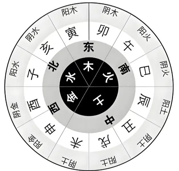 在十二地支上,辰戌丑未是土,寅卯是木,巳午是火,申酉是金,亥子是水,从这里就可以看出长夏是介于四个季节中间。这就是五分法。
