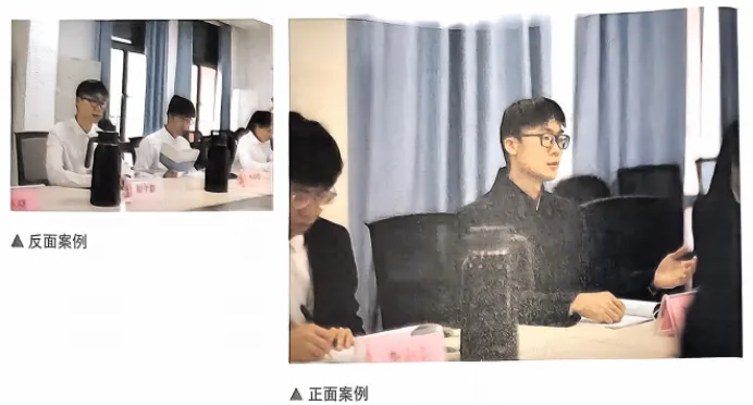 【对比举例】在轻松的交流会上,就要拍摄参会者们相对放松、自然的画面,切忌将参会的领导们拍得过于严肃,如果显得像是审判大会而非交流会,就与会议的主题氛围不符了。同时,要注意避免拍到会议中人物抓耳挠腮、看手机、摸鼻子、东张西望等不恰当的行为,确保拍摄的照片能准确反映会议的主题和氛围,有助于传达与主题相符的信息和情感。