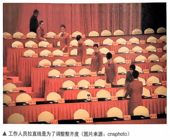 【正面举例】在任何正式场合,尤其是人数较多的时候,秩序和纪律都显得尤为重要。我们经常会看到大型会议现场会有工作人员拉一根直线,这正是为了调整整齐度。拉一根直线,或者保持整齐划一的姿态,不仅仅是为了形式上的美观、整洁,更是为了传达庄严感和纪律感。画面中每个人的行为举止都会影响整体效果,因此要确保每个参与者都遵守整齐有序的原则,规定和秩序是维持场面肃穆和有效运作的关键。