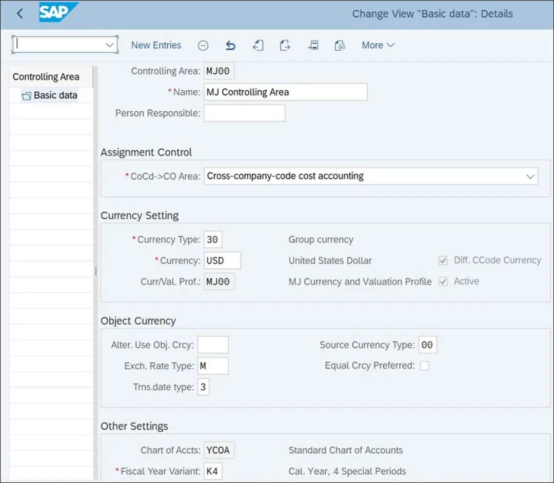 成本控制范围是用于内部管控和成本核算目的的组织单元。它被分配给一个或多个公司代码,这些公司代码可能有不同的本位币。成本控制范围内的所有公司代码将使用相同的会计科目表。它是组织内财务会计和管控职能之间的桥梁。它还与物料管理以及销售和分销职能集成,以确保整个组织内的财务和管控数据一致且准确。它是组织内管理和控制成本、收入及利润的框架。建议为组织内的所有公司代码创建一个成本控制范围,理由如下:它便于协调、监控和优化组织内的销售、分销和采购流程;它允许按业务板块编制损益表,并支持为所有法律实体建立全球报告结构;它便于整个企业进行间接费用规划、分配以及对生产活动提供支持。成本控制范围并将其分配给一个经营范围。要维护成本控制范围,请执行事务代码 SPRO,然后导航至“企业结构” -> “定义” -> “控制” -> “维护成本控制范围”。下图展示了成本控制范围 MJ00 的创建过程。要维护一个新的成本控制范围,从“选择活动”屏幕中点击“维护成本控制范围活动”。在接下来的屏幕中,您可以点击“新条目”,或者复制一个现有的成本控制范围来创建一个新的。输入一个四位代码和描述来创建成本控制范围,然后填写以下字段:负责人:在此字段中,您可以指定负责维护该成本控制范围的用户。此字段控制公司代码到成本控制范围的分配:有两个选项。成本控制范围与公司代码相同:如果您希望公司代码与成本控制范围相同,可以选择此选项。在此设置中,不同公司代码的会计年度变式、货币代码和会计科目表可以不同。跨公司代码成本核算:如果您想将多个公司代码分配给成本控制范围,可以选择此选项。这样,所有公司代码可以使用相同的会计年度变式、相同的货币代码和相同的会计科目表。货币类型:此字段控制成本控制范围的货币。下表列出了可供选择的货币类型。如果您在“公司代码 -> 成本控制范围”分配控制中选择“成本控制范围与公司代码相同”选项,系统默认使用货币类型 10。如果您在“公司代码 -> 成本控制范围”分配控制中选择“成本控制范围与公司代码相同”选项,成本控制范围的货币将自动设置。如果选择其他选项,您可以为成本控制范围选择货币。不同的公司代码货币:您可以通过“跨公司代码成本核算”分配控制来允许或不允许使用不同的公司代码货币。如果选择“成本控制范围与公司代码相同”,则不允许使用不同的公司代码货币。会计科目表:会计科目表是财务会计中使用的总账账户的结构化列表,它控制账户类型。它为组织准确报告各种财务交易提供了一个框架。根据分配控制,如果成本控制范围的分配控制设置为“跨公司代码成本核算”,您可以为成本控制范围选择适用于所有公司代码的会计科目表。会计年度变式:SAP S/4HANA 中的会计年度变式用于确定一个会计年度中定义的过账期间。为盈利能力分析分配相关的会计年度变式。要对成本控制范围进行盈利能力分析,需要将一个经营范围分配给成本控制范围。要进入将经营范围分配给成本控制范围的配置步骤,请执行事务代码 SPRO 并导航至“企业结构”•“分配”•“控制”•“将成本控制范围分配给经营范围”。下图显示经营范围 MJ00 已分配给成本控制范围 MJ00。在“OpCo(经营发了我)”字段中直接为成本控制范围指定经营范围。你若喜欢,点个❤️谢先👇