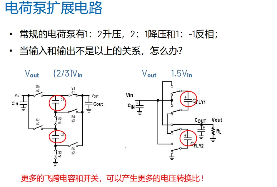电荷泵的基础拓扑围绕“飞跨电容(Cfly)”的充放电逻辑设计,三大核心拓扑覆盖绝大多数基础电压转换需求,实操中需根据输入输出电压关系精准选型: