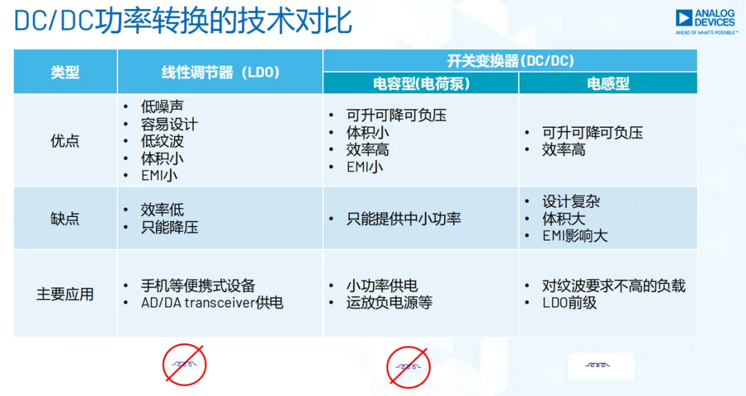 非隔离DC/DC场景中,电荷泵需与线性调节器(LDO)、电感型开关变换器(Buck/Boost)形成差异化选型。结合实战场景,从效率、体积、噪声、成本等核心维度对比分析,明确各方案的适用边界: