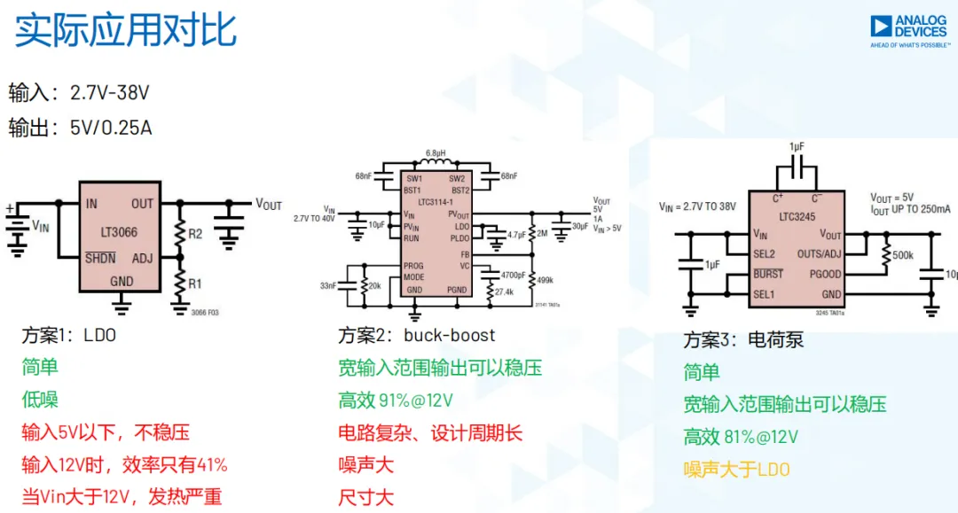 以输入2.7V-38V、输出5V/0.25A的工业传感器供电场景为例,三类方案的实操表现差异显著: