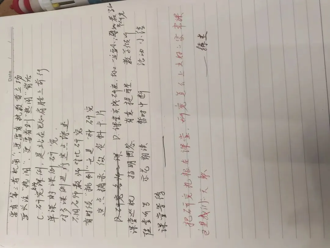 如今,保持写的能力,是我可以做的。当我走过迷茫和倦怠,每当在备课无助时,我总是喜欢拿起笔写写,仿佛在静静地思考中,才会生出一丝“光明”,带我走出混沌。写着写着,一切就慢慢地重新流动,重新生长。中年不惑,此刻重新背着行囊出发,或许不晚吧。慢慢走,不着急。沿途行思,就像杰哥说的,“把研究扎根在课堂里。”沉下心来,啥都可研究!