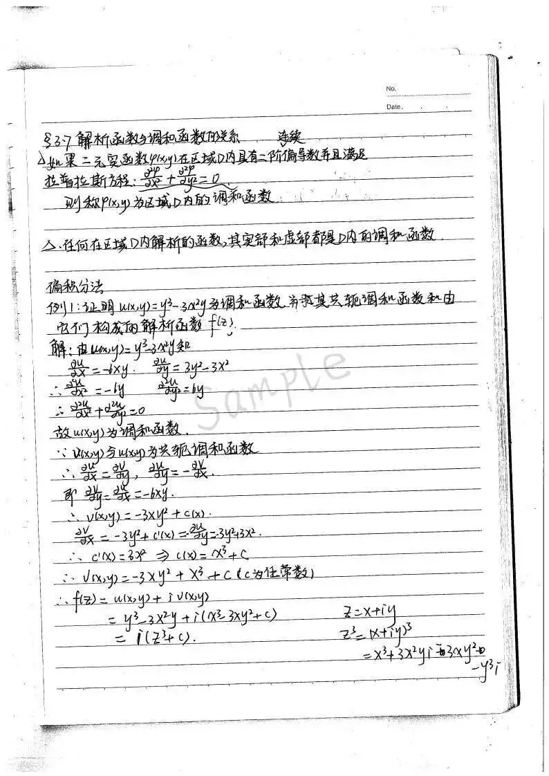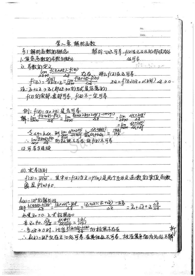 推荐理由:复变函数作为数学基础课中较难的一门,此笔记有意将知识点与习题相结合,字迹工整,同时罗列了许多重点公式,特此推荐。