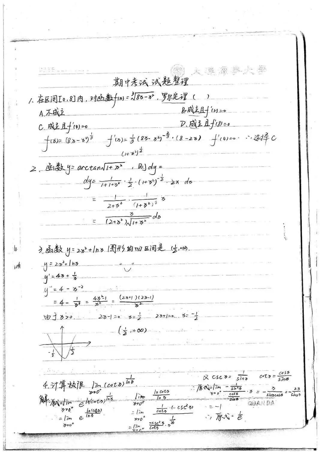 推荐理由:本笔记通过颜色的对比将知识点表述的十分清晰,字迹工整令人过目不忘,不仅记录了课上老师所讲的重点例题,同时并认真归纳了对知识点的疑问,十分认真,特此推荐。