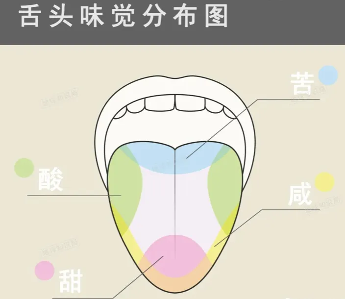 构成舌根(味觉器官)的极微,分布在舌头表面,形状如同半月。据古代的论师传说:舌头正中央,大约有一个毛尖大小的区域,并不是舌根极微所遍布的地方(即没有味蕾,味觉不敏感)。(大家可以自己拿手指尖试一试)