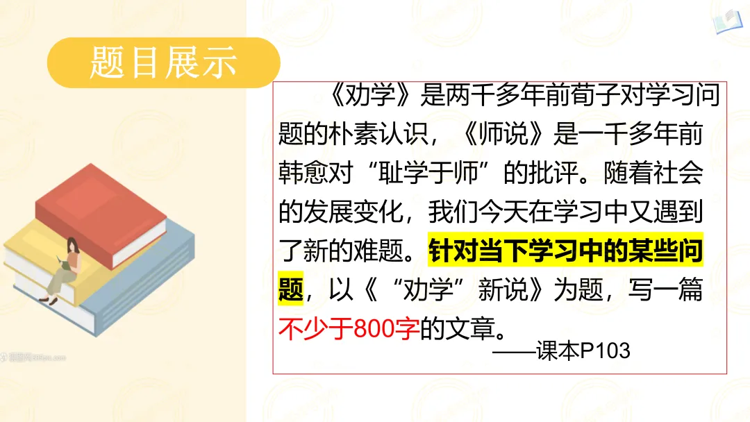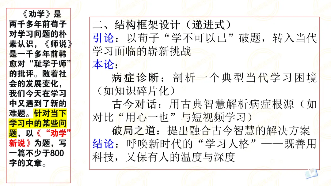 标题创新:可在主标题下加副标题,如《“劝学”新说——给知识焦虑时代的学习者》