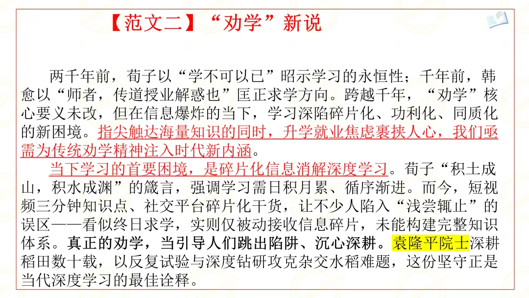 《“劝学”新说》作文指导及范文【最新版】