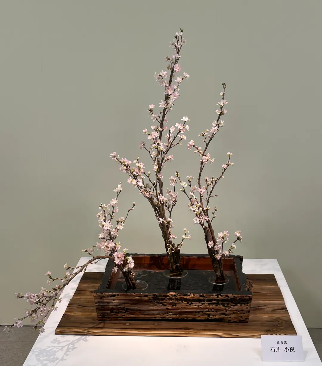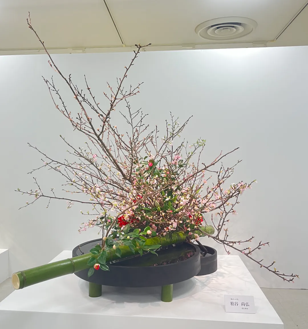 小原流有专门《样式本位集成》的书。书中详细介绍了包括样式本位介绍、样例、寸法、插法、技巧。可以从书中体会当时为这种花材设置这样的插法的缘由。有兴趣的话可以买来学习~官网还有中文版和英文版,我当时买的日语版,也因此发奋图强苦学日语😂 我总觉得直接看原文,表达能更准确一些。(花型卡上的翻译马马虎虎。但之前在日本店里看到的中文实在拗口且难以理解)分享个非常有趣的故事:可能因为昨晚在家折腾了好几盆花,睡着后梦到去日本一个餐厅吃饭的时候,餐厅的另一边还在卖小原流的限定版学习书。生怕人家下班,赶紧和店员交代稍等我一会儿我上楼拿钱马上买入😂(整体来说,我的书写逻辑主线是跟着自己的学习路径记录的。当然也会在特定的时节做一些专题,同质要点整合在一起。并不一定严格按照花道形式/表现的分类记录)下一篇再看看练习笔记,今天就再看点花展的作品一起期待一下春天吧~日本的早樱已经开始开了,假期、春日也要到啦~~最后这个作品真是各个角度看都不一样。以及,一共用了4个不同品种的樱花哦!前些天老师说的一句话我觉得非常贴切“樱花就是只有一枝你也只能看到它的存在”。就像第一个作品,颜色上、分量上给人直击的肯定不是右侧那枝樱花,但它就是如此显眼。(最近获得一个冷知识,日本的赏樱季在天气预报上会报道樱花开放的情况、赏樱推荐。同时,日本人野餐赏樱嬉闹是“赏花”的特例。)