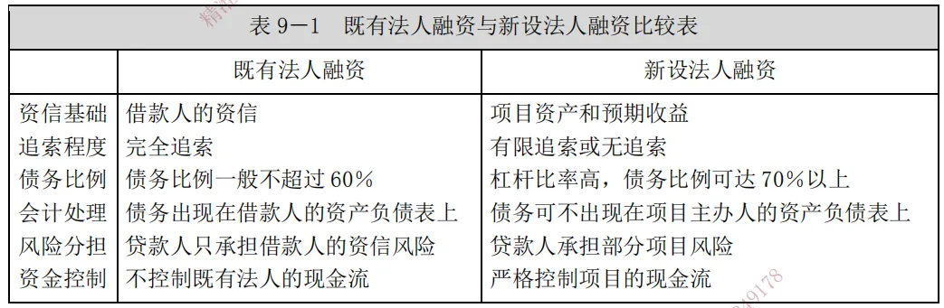 (3)债务比例不同,新设法人融资可以有较高的债务比例(一般 70%以上),而既有法人融资一般不超过60%。